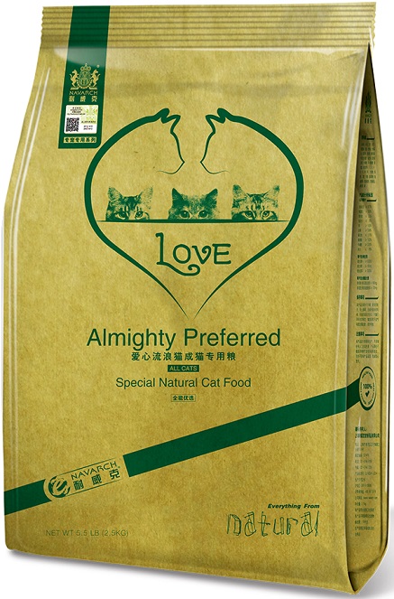雞肉、牛肉、三文魚(yú)、吞拿魚(yú)、大米、玉米、玉米蛋白粉、雞油、雞蛋、天然風(fēng)味劑、卵磷脂、魚(yú)油、低聚果糖、符合維生素和微量元素、膳食纖維、賴氨酸、DL-蛋氨酸、?;撬帷⒚缘闾崛∥?